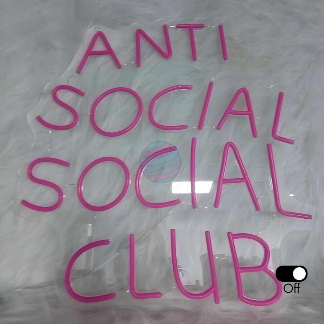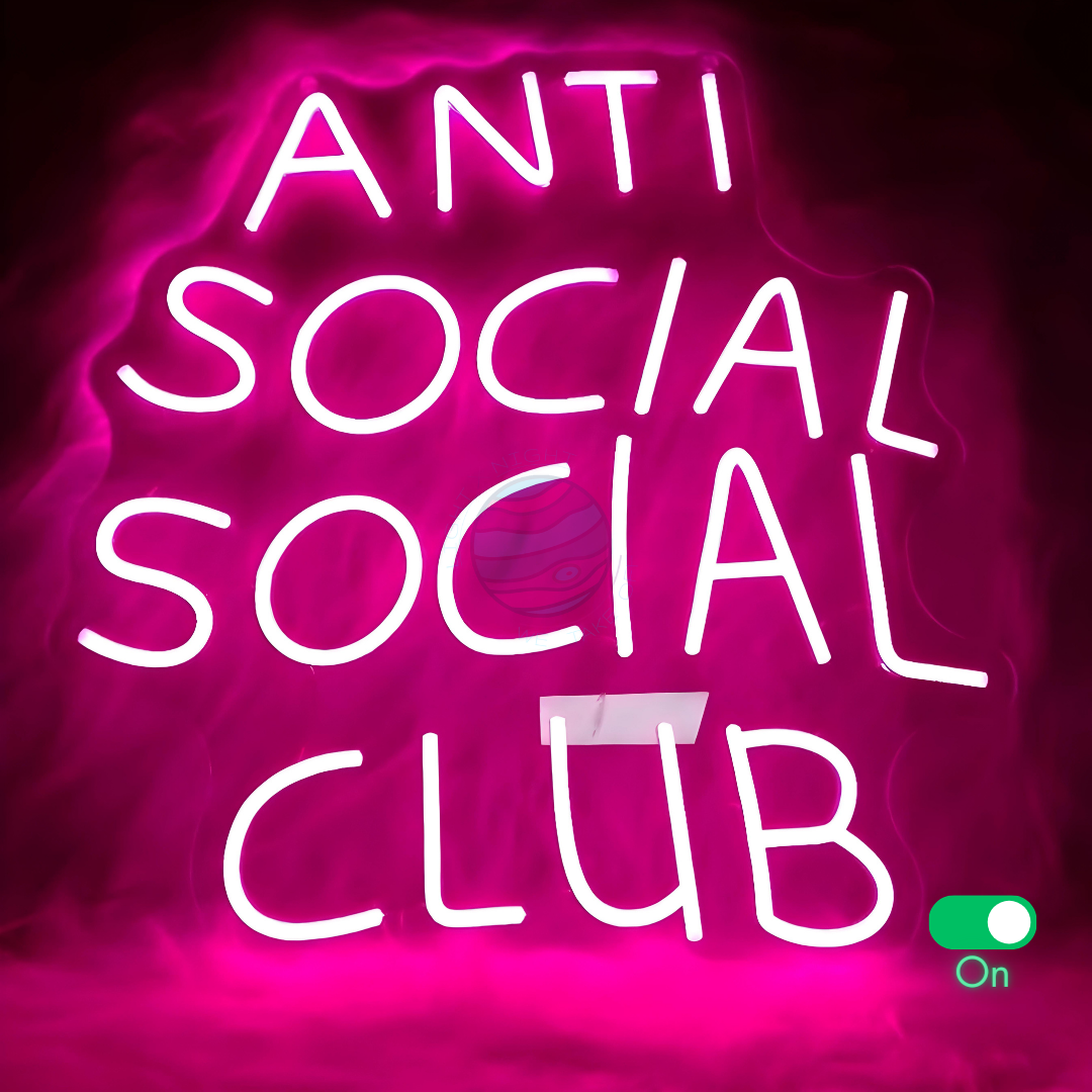 The "Anti Social Social Club" Neon Sign is versatile and easy to install, making it suitable for a variety of settings. Hang it on your wall, place it on a shelf, or mount it in your home bar, bedroom, or office space to instantly transform the ambiance with its mesmerizing glow.