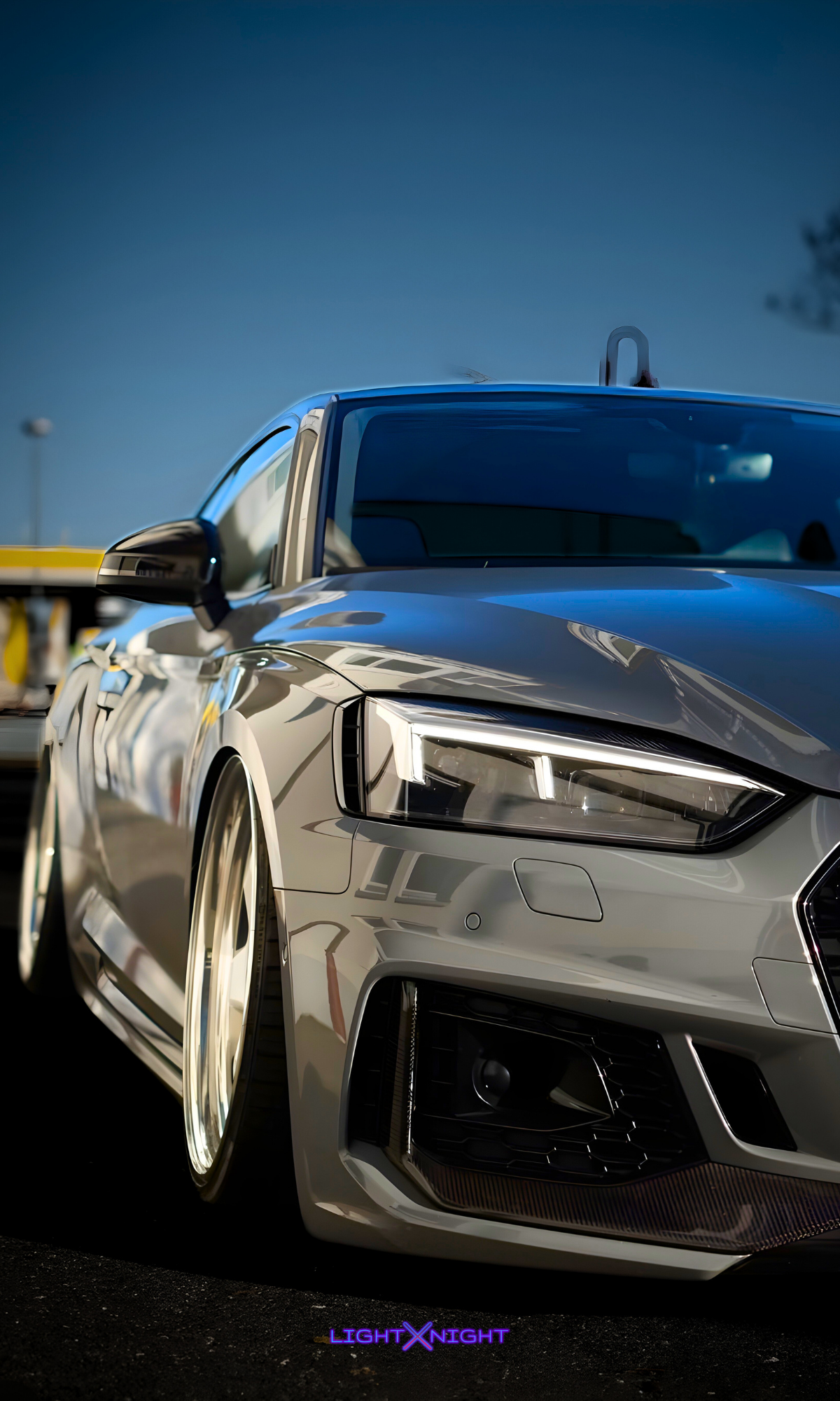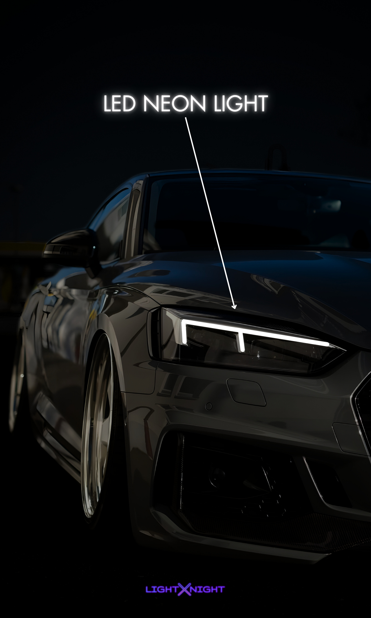 💡 Neon-Lit Precision: LED neon tubing highlights the RS5’s menacing headlights and signature grille, capturing the spirit of Audi performance.