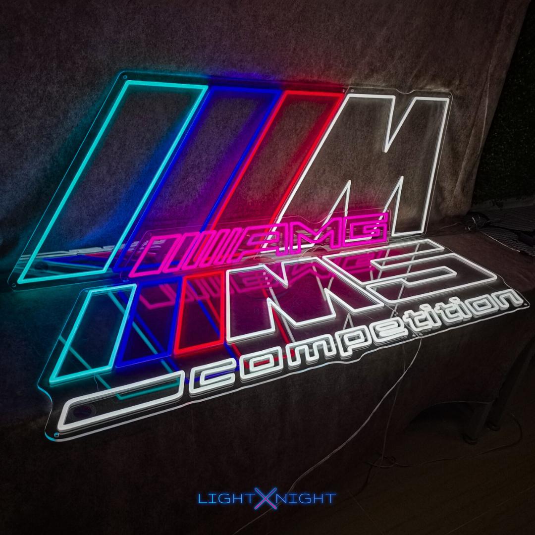 Elevate your space with the BMW M5 Competition LED Neon Sign by Light X Night. Let its vibrant glow and iconic design celebrate the fusion of classic elegance and modern innovation, and inspire you to embrace the joy of the open road.