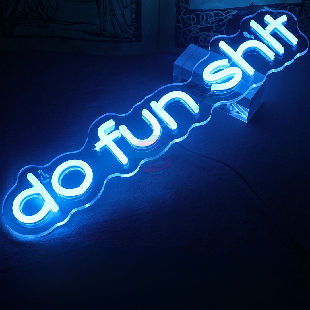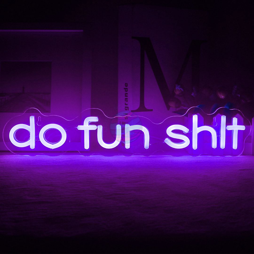 This "Do Fun Shit" Neon Sign makes it easy to live your life to the fullest! With its bright neon colors, you'll never have to worry about feeling down. YOLO - you only live once, so "Do Fun Shit" and light up your life with this neon sign!