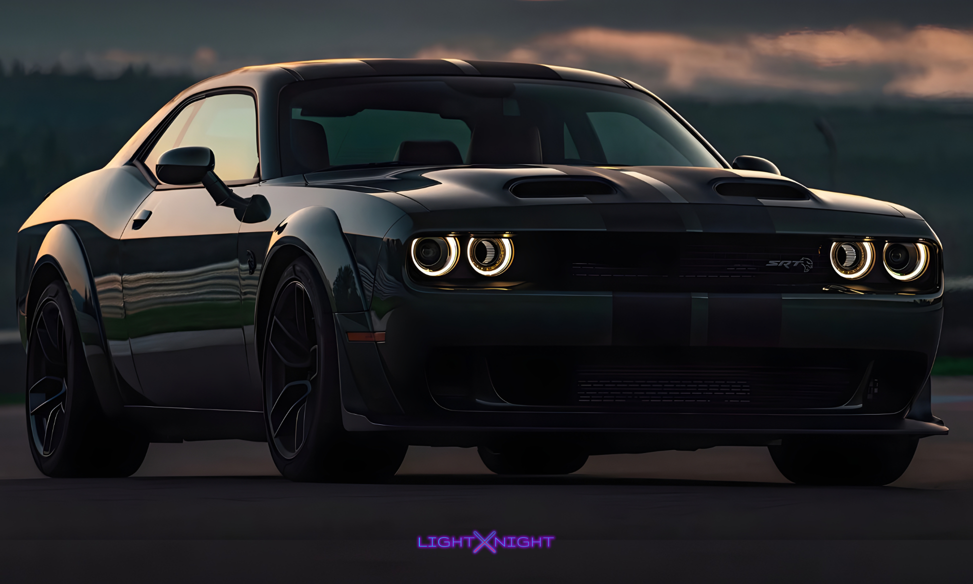 Dodge Challenger SRT Horizontal Neon Poster – Unleash Pure Muscle 🏁✨