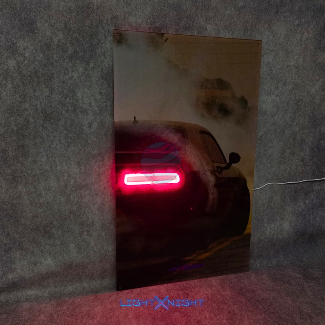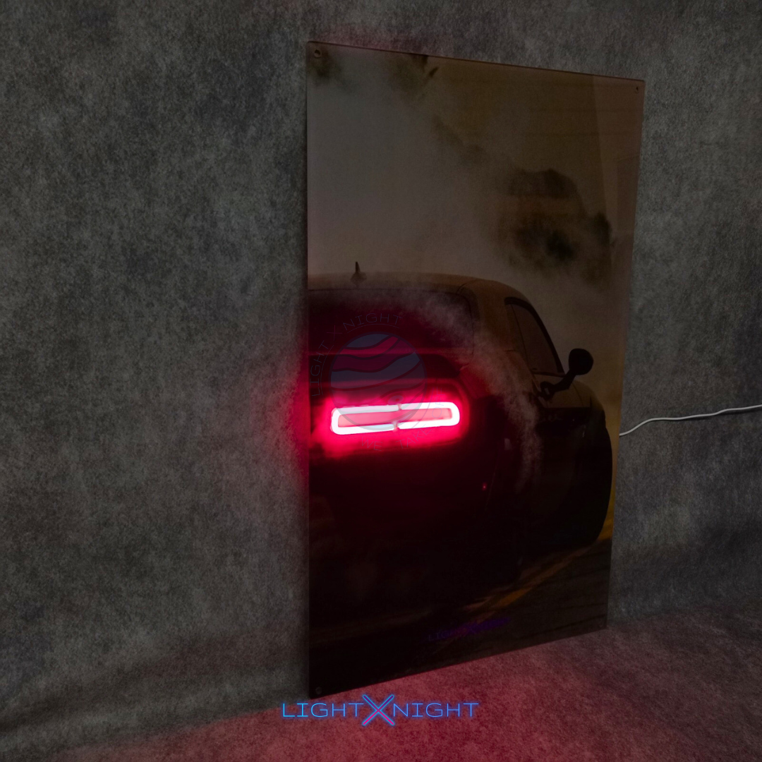 Embrace the unstoppable force of the Dodge Challenger SRT with this bold Neon Poster. Featuring a high-definition image of the Challenger SRT’s commanding rear, highlighted by glowing LED neon tail lights, this piece brings the muscle car’s aggressive attitude and power into any room.