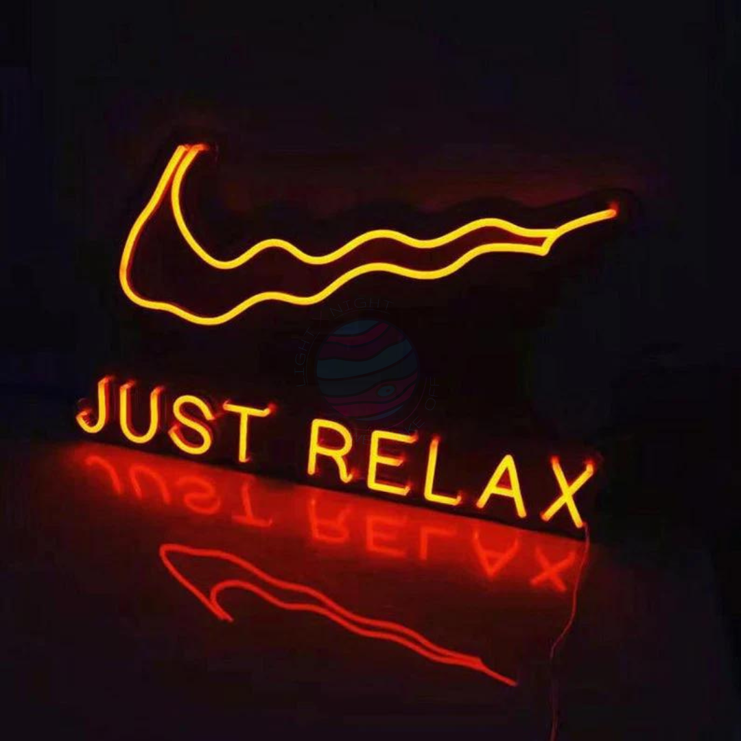 😌 Iconic Swoosh: The LED neon sign features a wavy swoosh that embodies the soothing essence of relaxation, accompanied by the phrase "Just Relax" to serve as a gentle reminder.