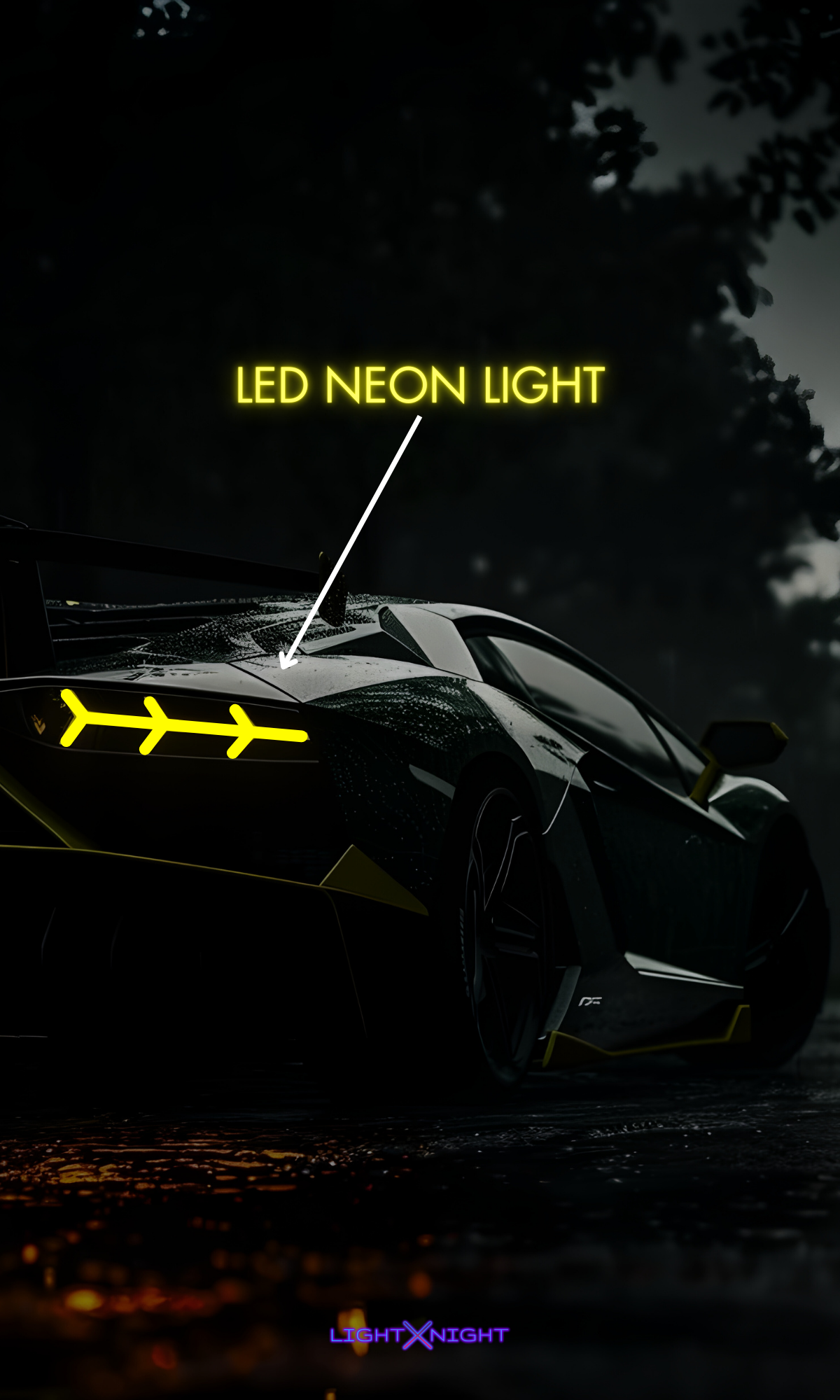 💡 Neon-Illuminated Taillights: LED neon tubing enhances the Aventador’s signature Y-shaped taillights, creating a stunning and electrifying glow.