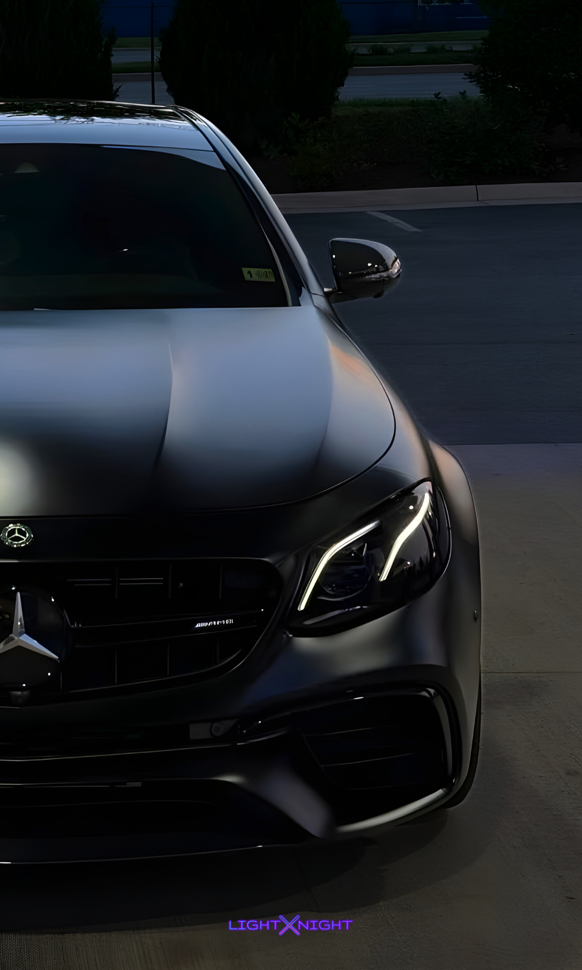 💡 Neon-Lit AMG Brilliance: LED neon tubing illuminates the E63 S’s fierce headlights and front fascia, capturing its unstoppable road presence.